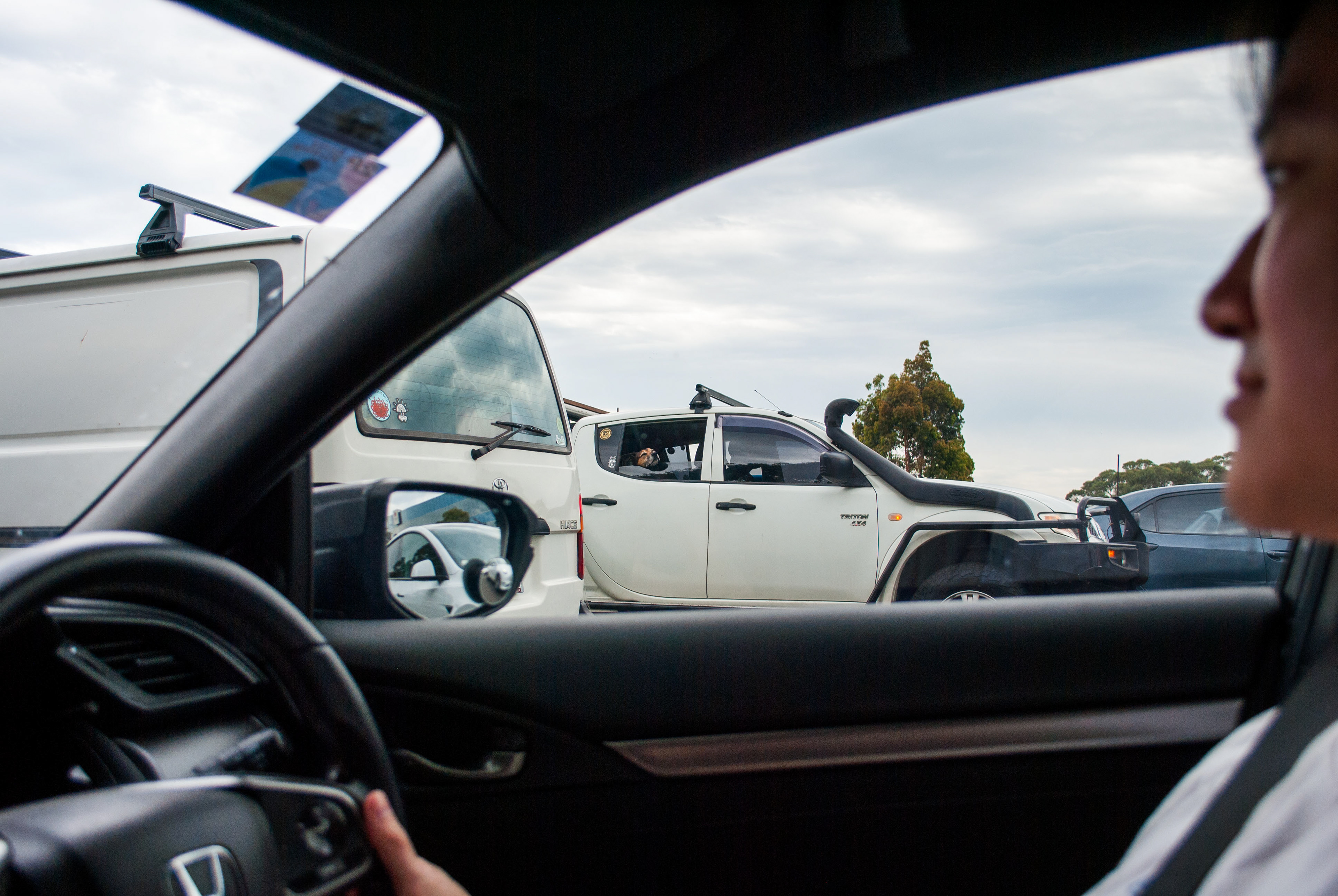 Dog in traffic, Sydney, Nov 2025
