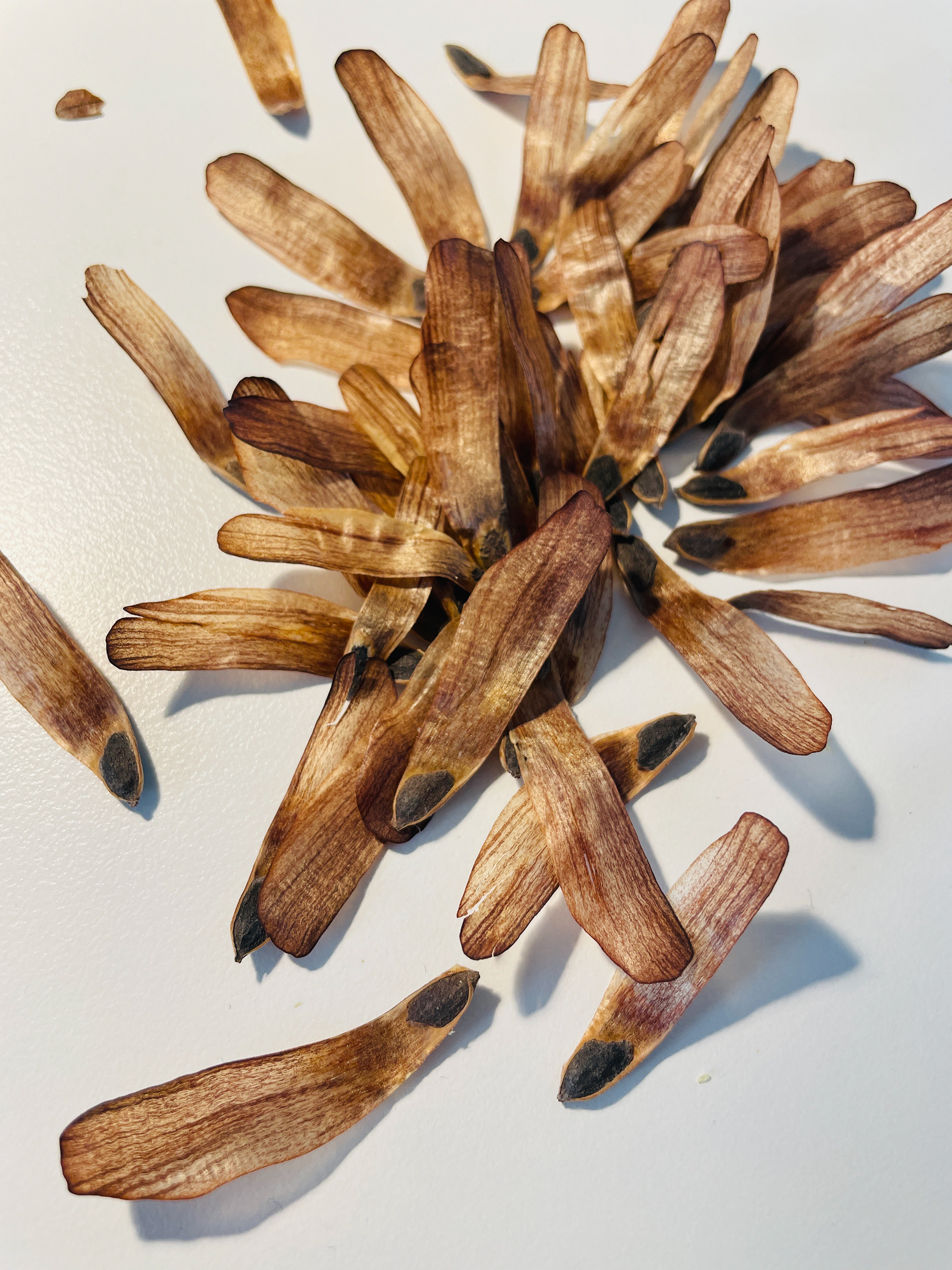 Pine seeds retrieved from a 1-year-old pine cone, Home, June 25
